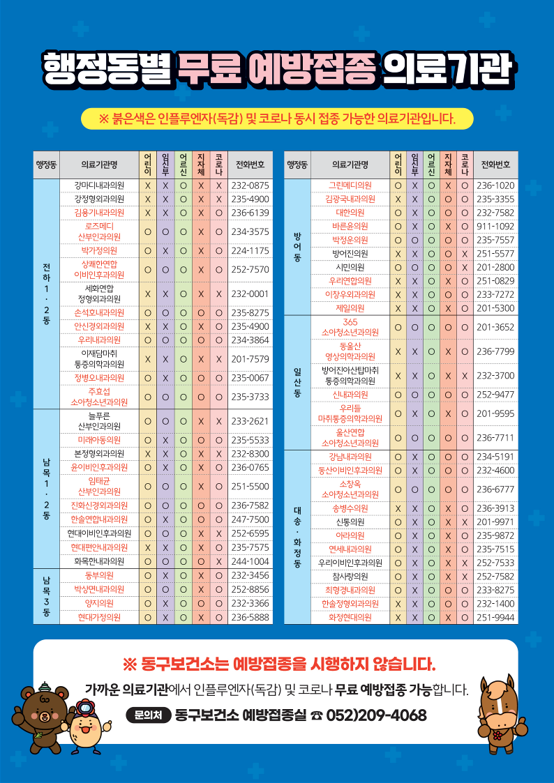○ 백신 종류: 인플루엔자(독감), 코로나19