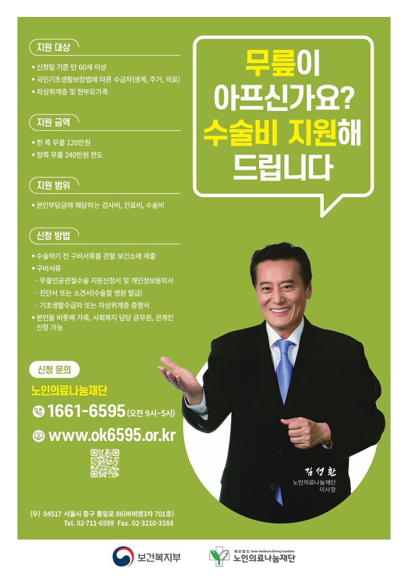 ○ 사업주체: 노인의료나눔재단(02-711-6599/www.ok6595.or.kr)
