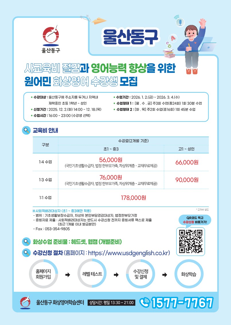 ○ 문 의 처: 울산 동구 화상영어학습센터(☎1577-7767)