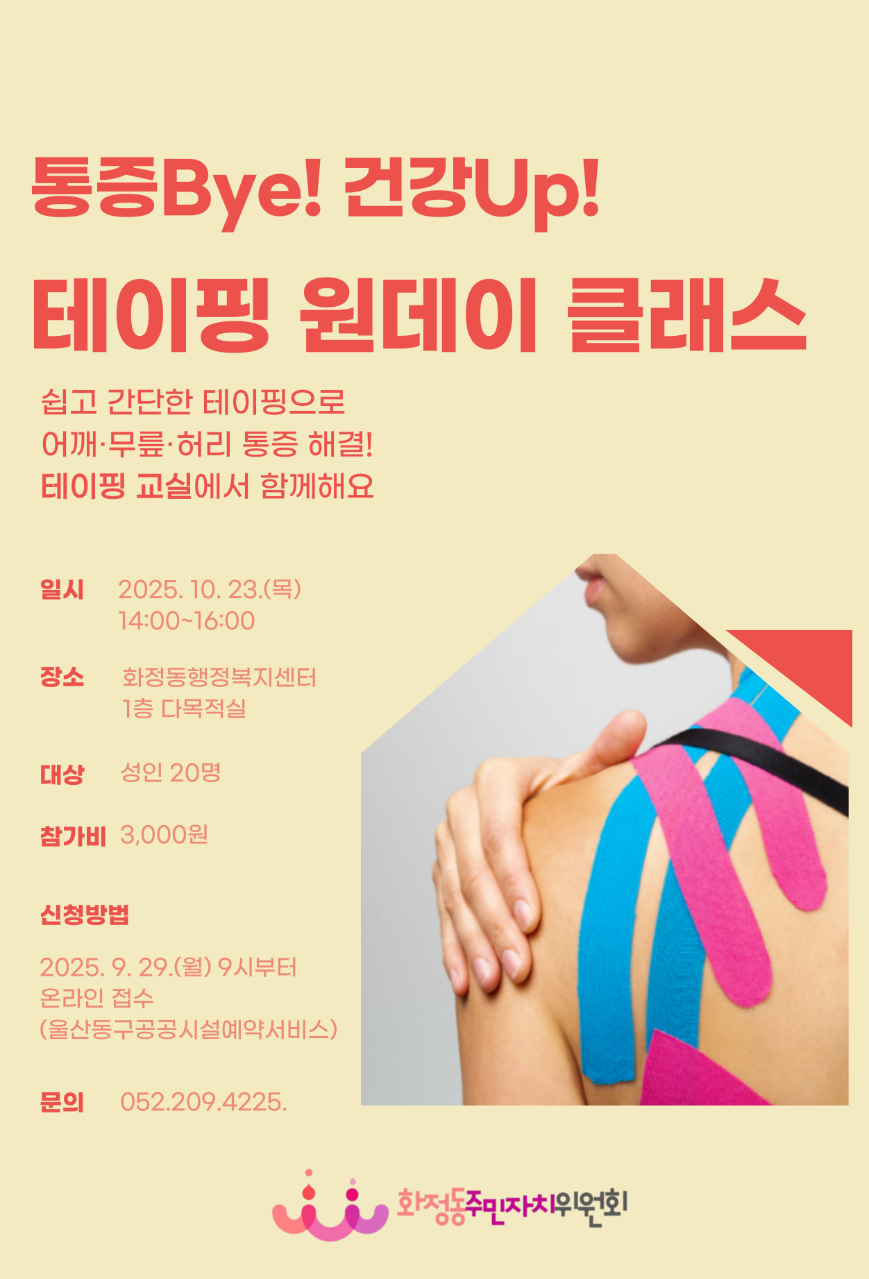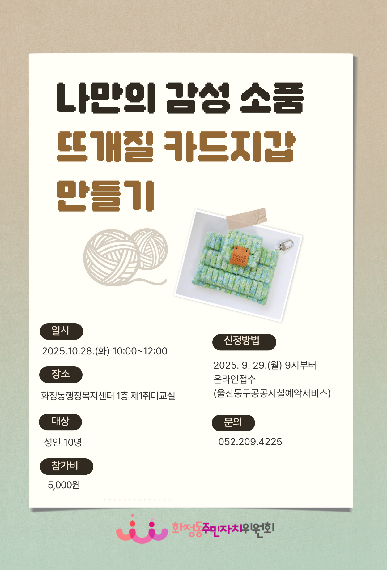 주민자치프로그램 일일 특강 안내(테이핑원데이클래스, 뜨개질카드지갑만들기)