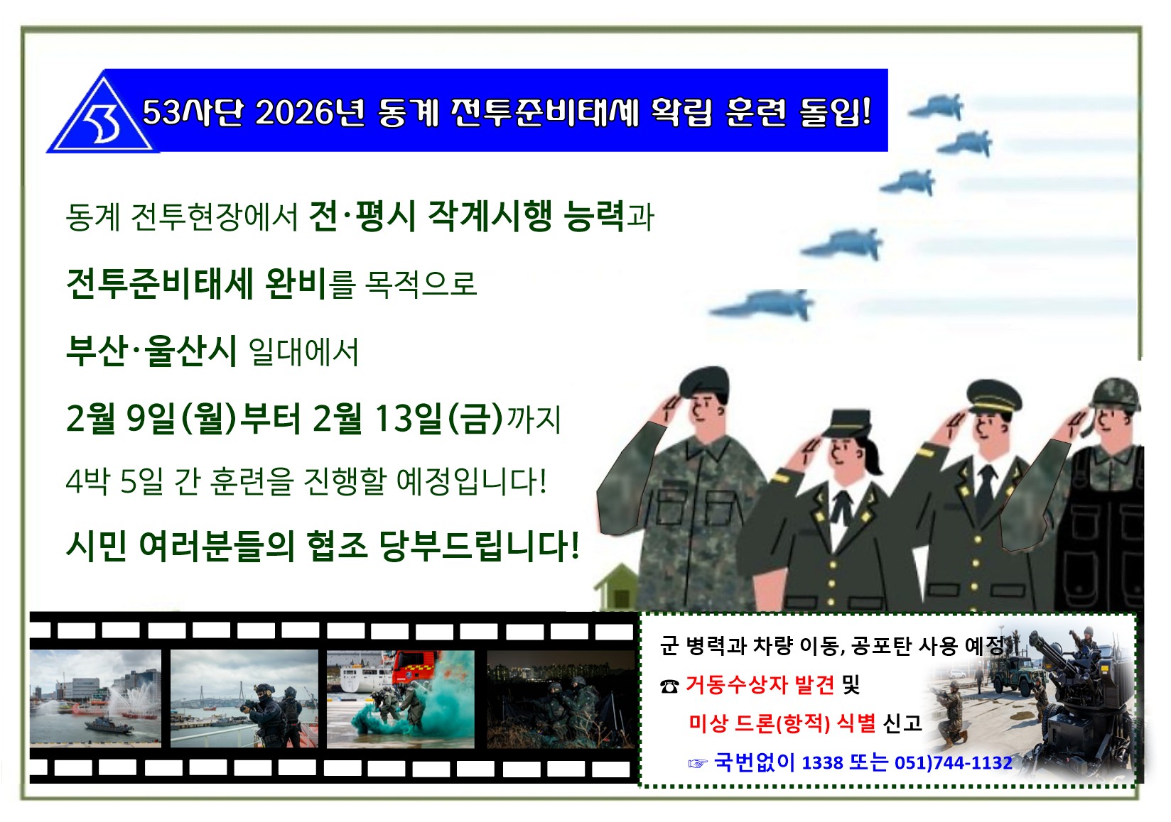 2026년 동계 전투준비태세 확립 훈련 사전예고