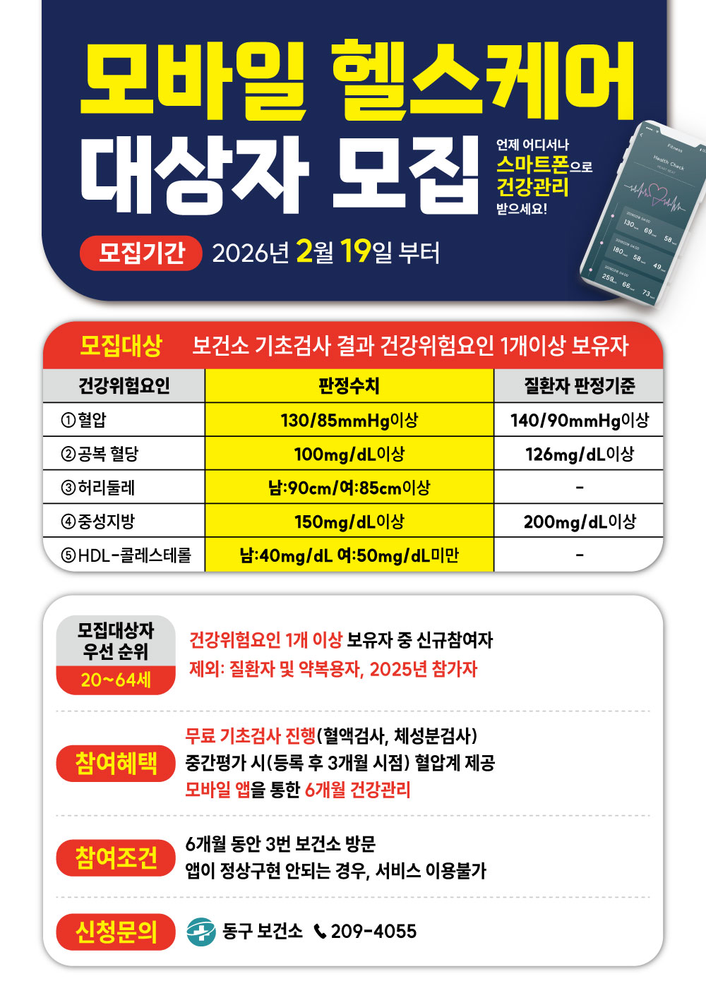 3. 대 상: 20 ~ 64세 동구 주민, 동구 주소지 직장인 140명(선착순)