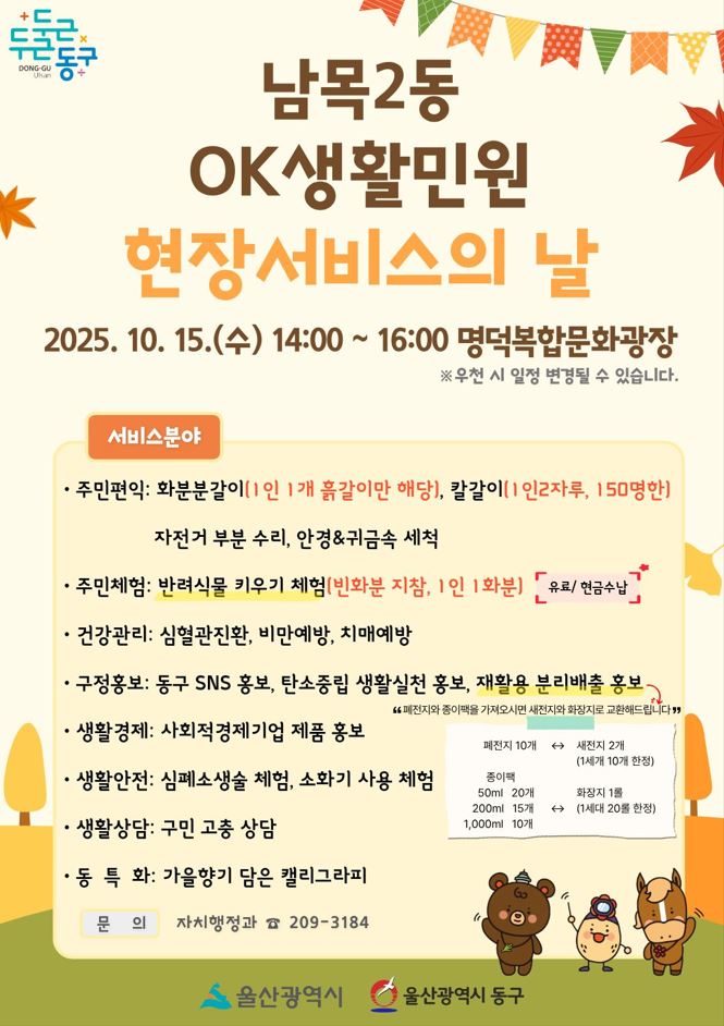 10월 OK생활민원 현장서비스의 날 안내(남목2동, 방어동)