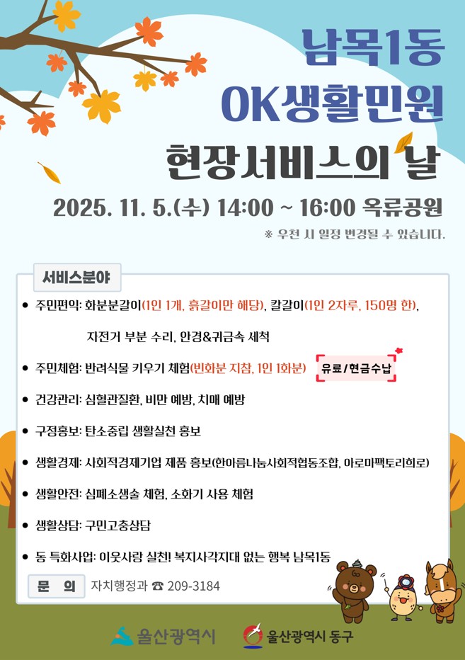11.5.(수) 남목1동 OK생활민원 현장서비스의 날 안내