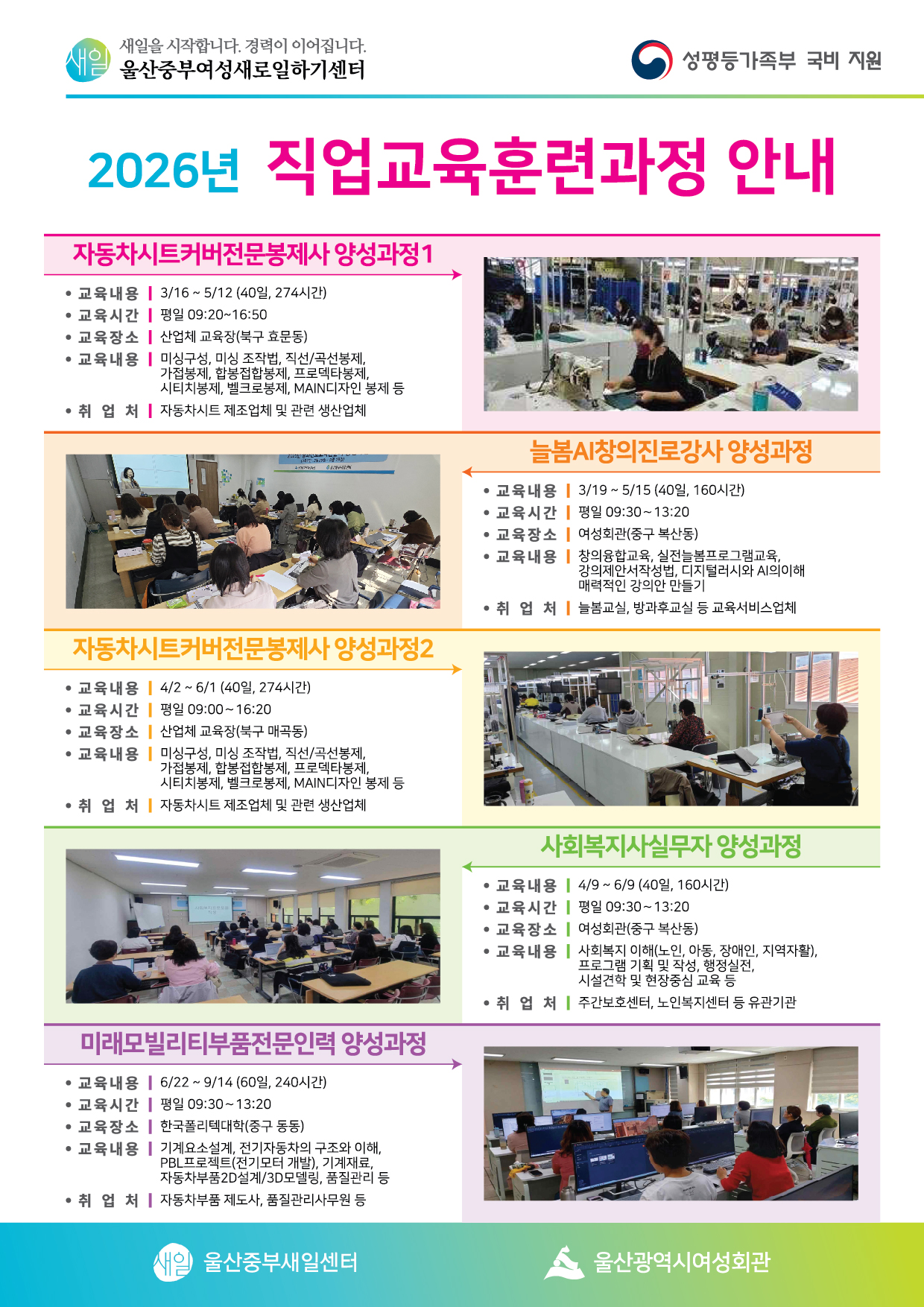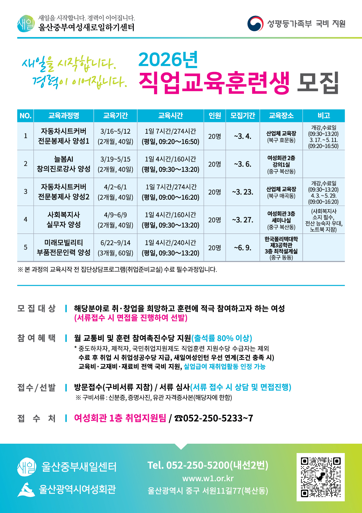 성평등가족부 국비 지원 '2026년 직업교육훈련생' 모집 안내