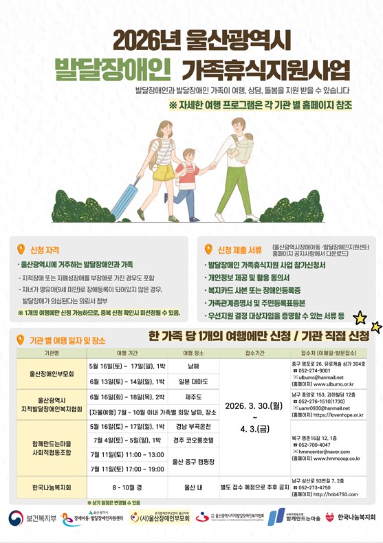 - 사업문의: 울산광역시발달장애인지원센터(052-710-3156)