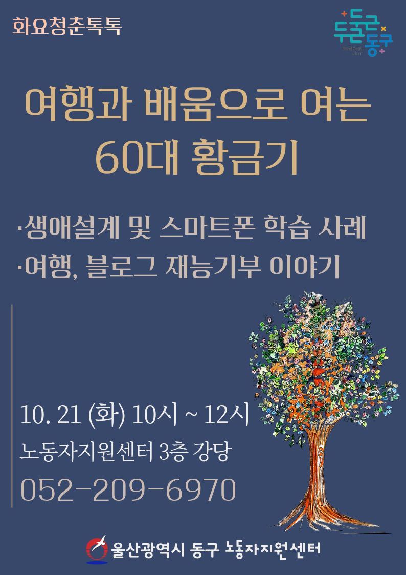 동구 노동자지원센터, '여행과 배움으로 여는 60대 황금기' 사례 특강 개최