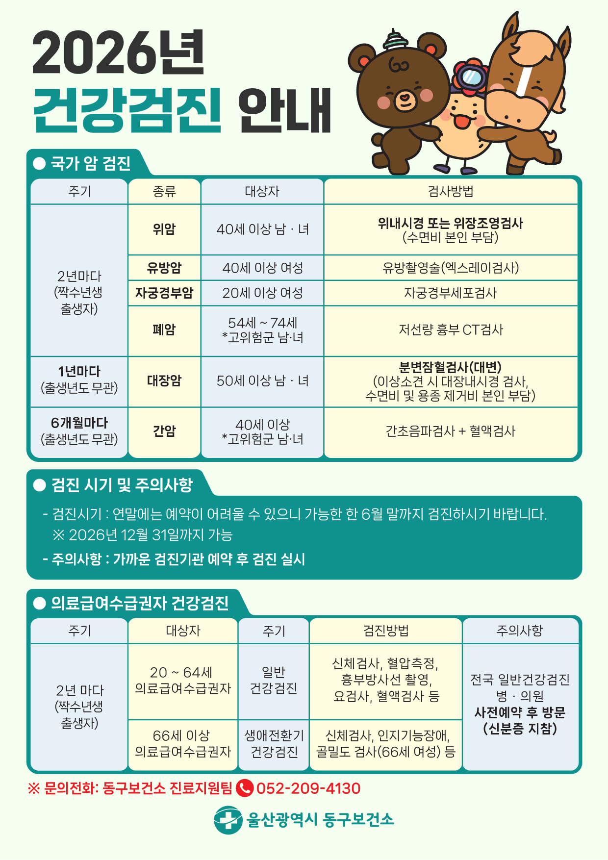 2026년 국가암검진 및 의료급여수급권자 일반건강검진 안내