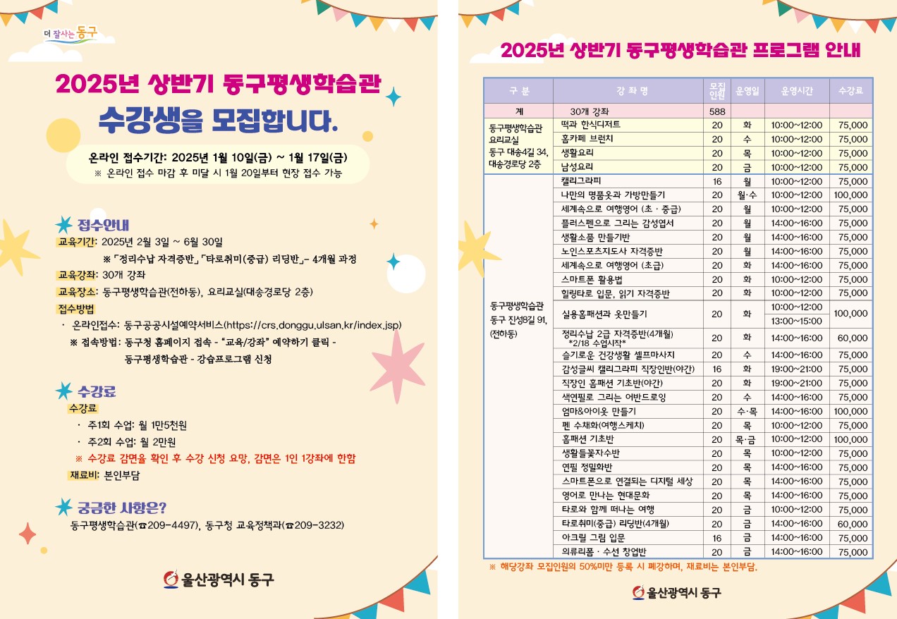 2025년 동구평생학습관 상반기 수강생모집