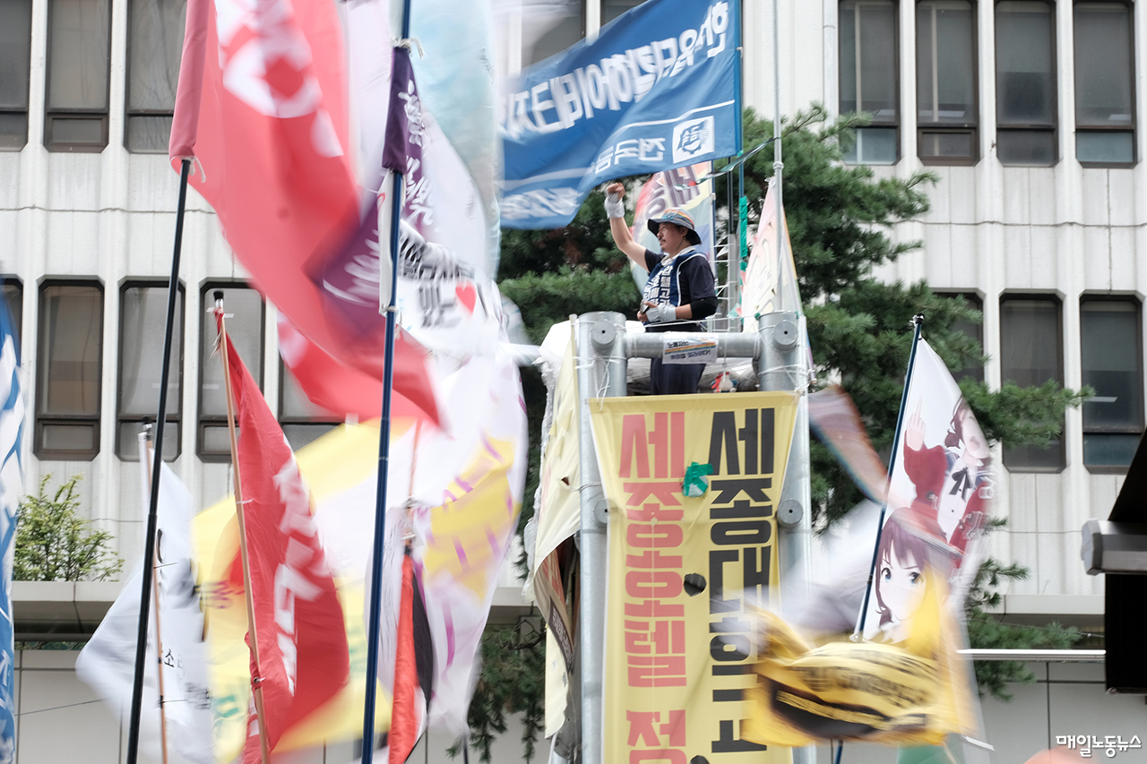 세종호텔은 2021년 코로나19에 따른 경영난을 이유로 고 지부장을 포함한 노동자 15명을 정리해고했다. 이후 2024년 12월 부당해고 소송에서 대법원은 사용자쪽 손을 들어줬다. 고 지부장은 해고 철회를 촉구하며 지난해 2월13일 10미터 높이의 지하차도 안내 구조물에 올라섰다.