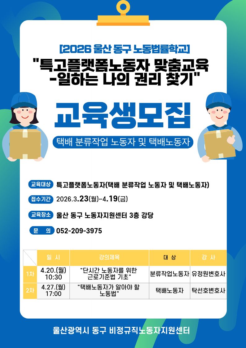 [노동법률학교]특고플랫폼노동자 맞춤교육 - 교육생 모집
