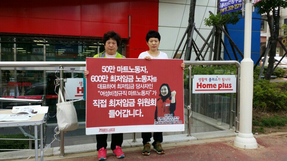 ▲ 홈플러스 비정규노동자들의 외침~최저시급 최소한 1만원은 되어야 먹고살수 있다.