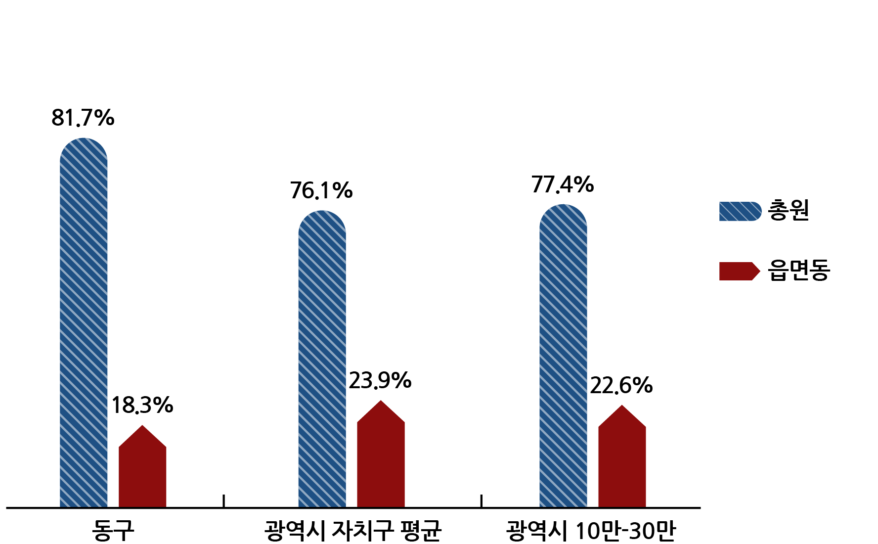 | 광역시 10만-30만 자치구 평균 | 617명 (77.4%) | 182명 (22.6%) |